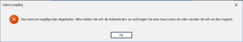 Beim ersten Start von Infodesk, nach erfolgreicher Installation, erscheint zunächst eine Meldung, dass die Lizenz ungültig oder abgelaufen sei: