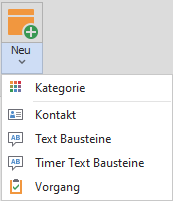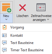 Aus dieser Ansicht heraus kann bereits ein Kontakt bzw. ein Vorgang hinzugefügt werden.
