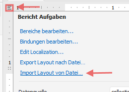 Um einen exportierten Bericht (.repx) zu importieren, geht man wie folgt vor: