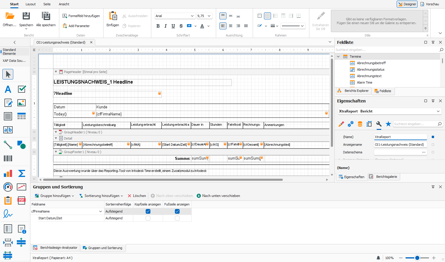 Nun wird der Bericht geladen und überschreibt alles vorher konfigurierte: