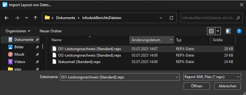Im sich öffnenden Datei-Explorer nun zum Speicherort der Berichtsdateien navigieren und die zu importierende .repx-Datei auswählen