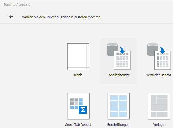 Im zweiten Dialog kann eine Berichtsvorlage gewählt werden: