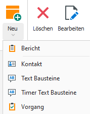 In der Ansicht “Berichte” im Abschnitt “Berichte” auf “Neu” klicken oder tippt Strg+N: