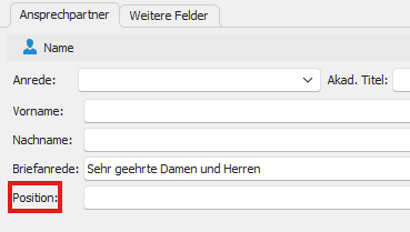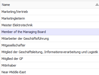 In dieser Ansicht können verschiedene Positionen definiert werden, welche in den einzelnen Kontakten als Standard-Auswahl abgerufen werden können