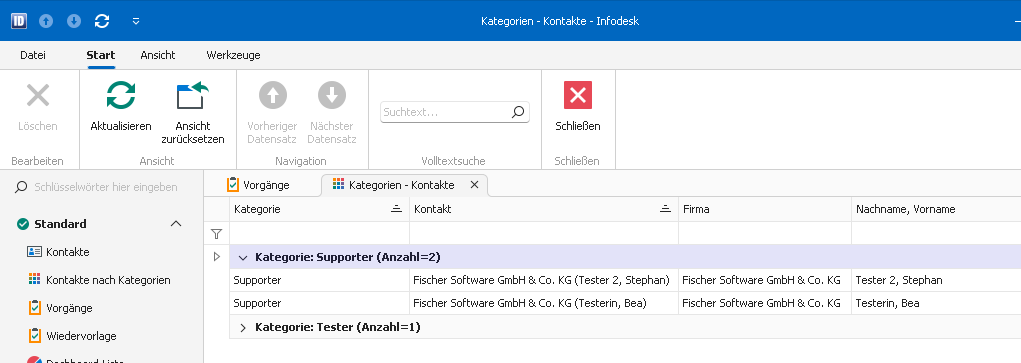 Aktualisiert die Kontakte nach Kategorien-Ansicht