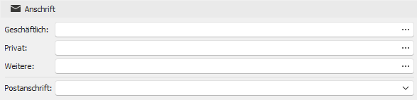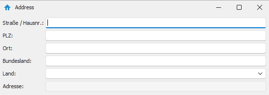 Jede der drei Adress-Einträge öffnet einen Dialog in dem folgende Felder zur Verfügung stehen: