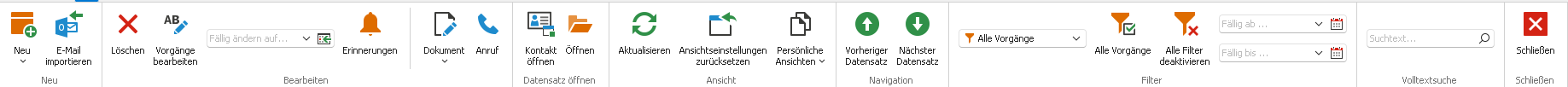 Diese Funktion steht nur in der Grund-Ansicht “Vorgänge” bzw. “Wiedervorlage” zur Verfügung, nicht in persönlichen Ansichten.